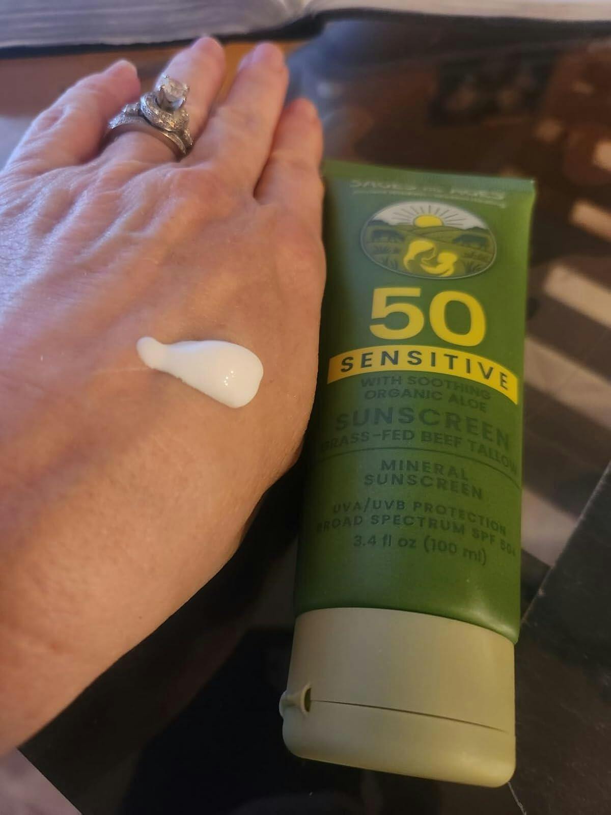 100% Mineral Sunscreen SPF 50 with Non-Nano Zinc Oxide — Reef Safe UVA/UVB Broad Spectrum Sunblock, Water Resistant 80 Min, Moisturizing Tallow Lotion for Face & Body, 3.4 fl oz